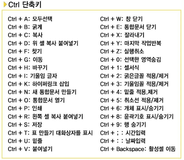 - CtrI + Shift + ( : 선택 영역안 숨겨진 행 숨김 모두취소
