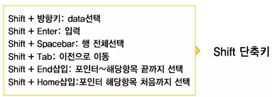 - Shift + End삽입 : 포인터~해당항목 끝까지 선택