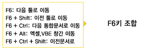 - F6 + Alt : 엑셀, VBE 창간 이동