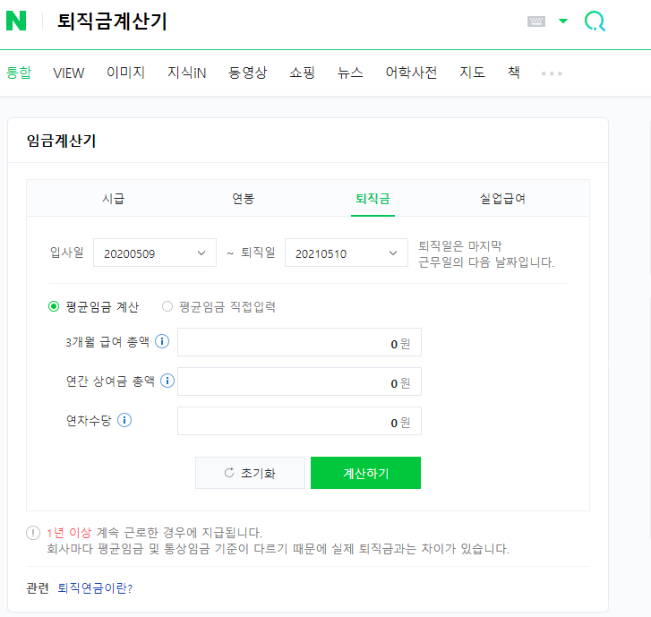 퇴직금계산기 : 네이버 통합검색