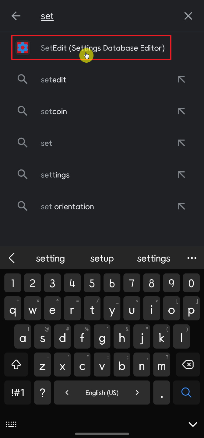 일단 먼저 구글 Play 스토어에서 "SetEdit" 검색 한 다음에 앱을 설치한다. 검색을 할 때 Set까지만 쳐도 자동으로 SetEdit 앱을 추천해 준다.