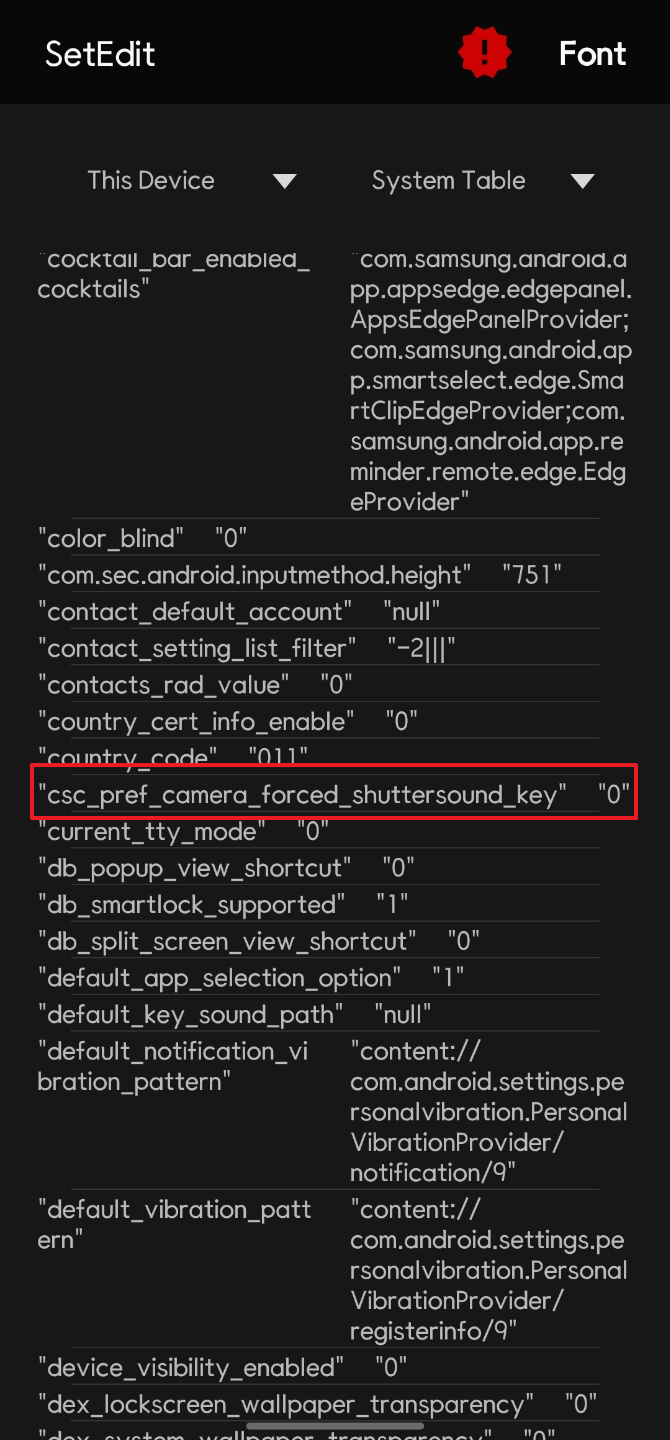 나는 SetEdit 앱을 지웠다가 다시 설치를 했는데 csc_pref_camera_forced_shuttersound_key 항목 자체가 사라져 버린 것을 확인했다.