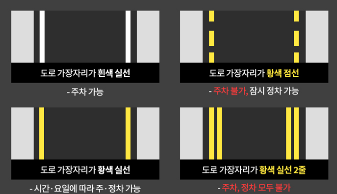 갓길 주정차: 선의 색상으로 구분하는 허용 범위