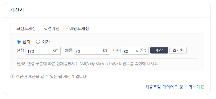 Q. 네이버 비만도 계산기는 어떻게 사용하나요?