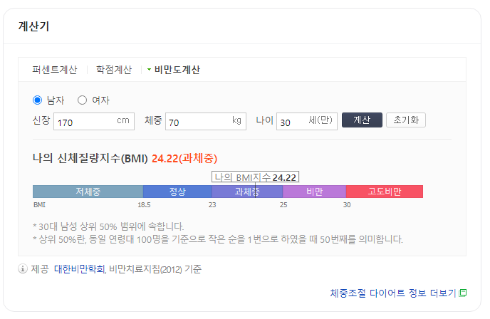 '비만도 계산기'의 네이버 통합검색 결과입니다.