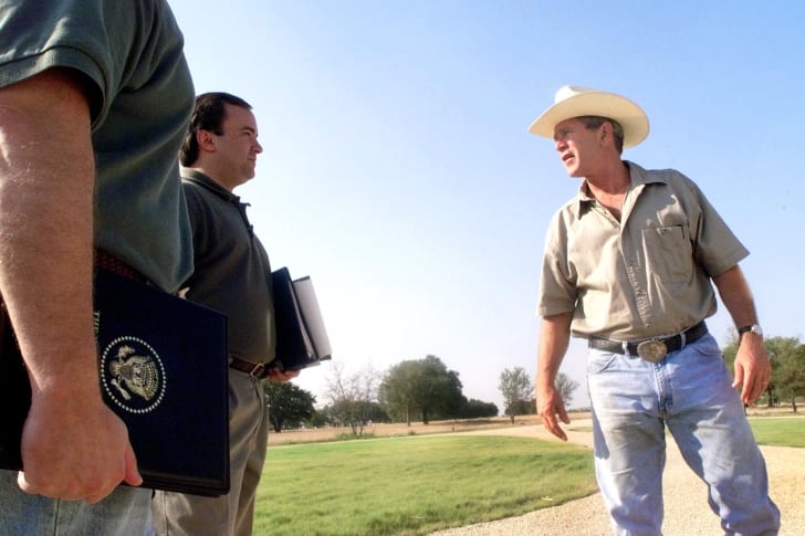 대통령들은 로널드 레이건의 목장에서부터 지미 카터까지 청바지를 선호하는 오랜 역사를 가지고 있다. 그러나 2001년 조지 W 부시 대통령이 취임했을 때 그의 첫 번째 명령 중 하나는 대통령 집무실에 있는 모든 사람에게 스포츠 청바지를 금지하라는 것이었다. 건물의 휴면 복장 규정을 강화하려는 의도였다.(부시는 2005년 검은색 청바지에 선글라스를 끼고 방문한 U2 가수 보노에 대해 예외를 뒀다)