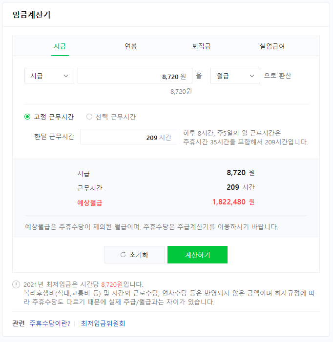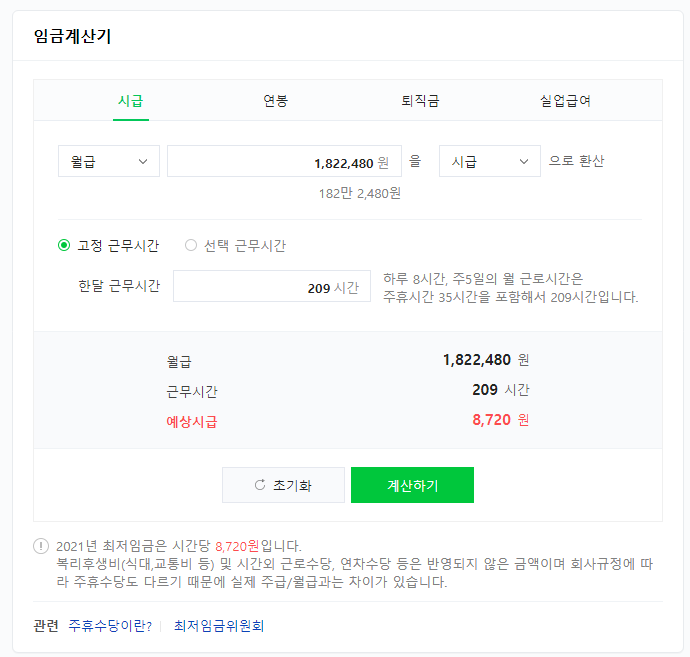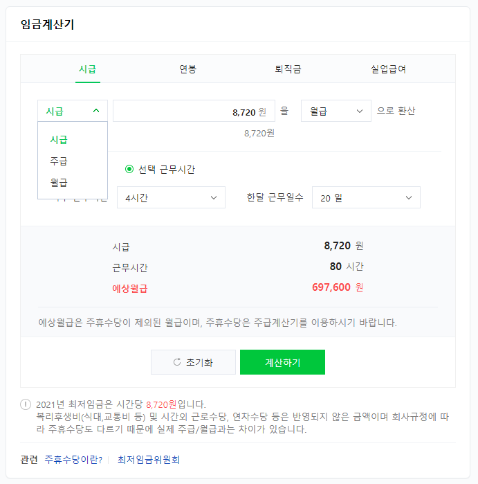 네이버 시급 계산기