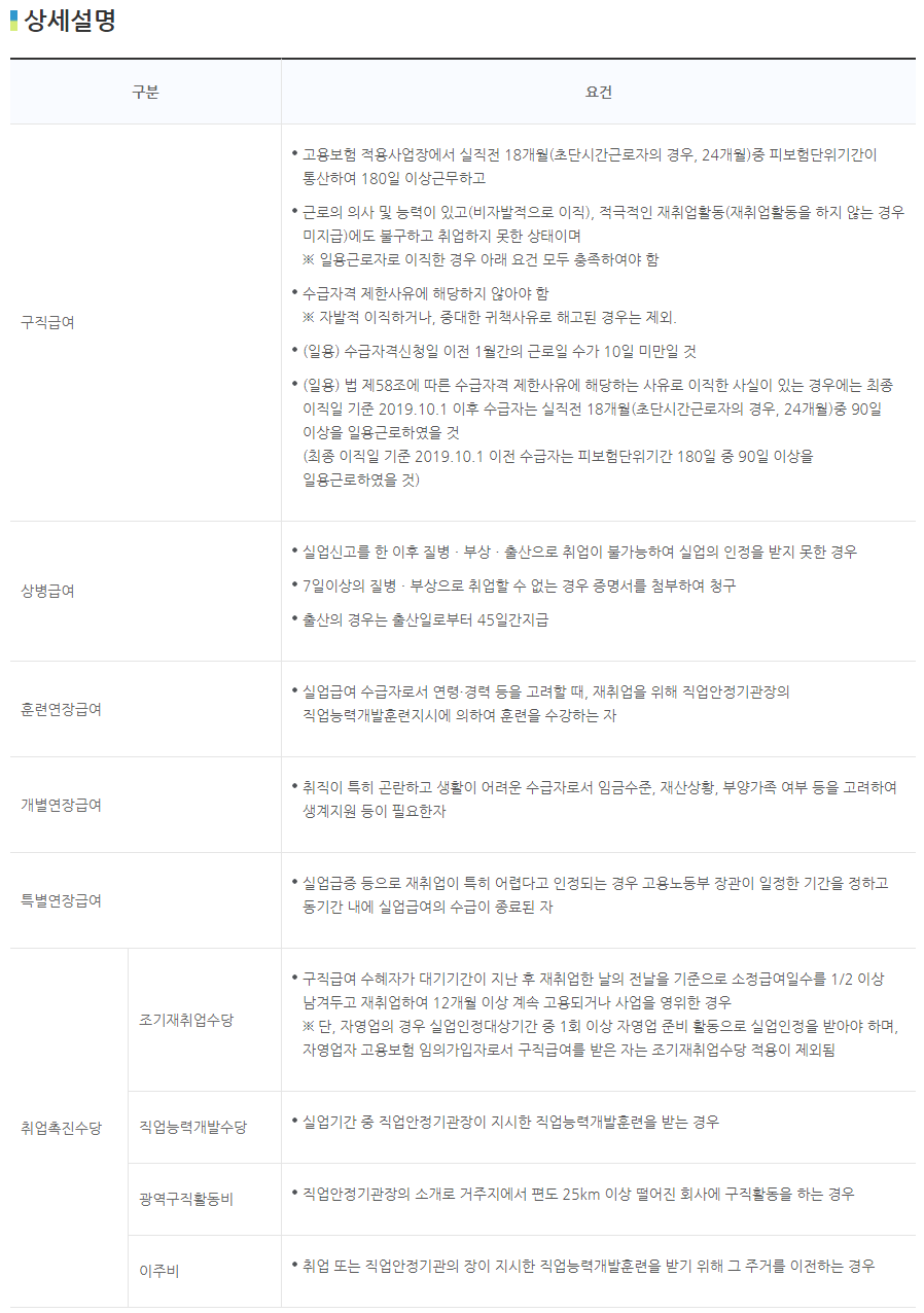 - 이직일 이전 18개월 동안 고용보험료를 낸 근로기간이 180일 이상인 근로자