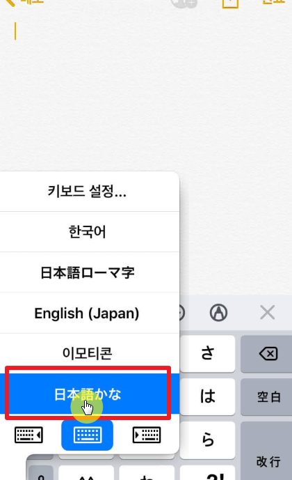 설정 → 일반 → 키보드 → 새로운 키보드 추가 → 일본어 → Kana