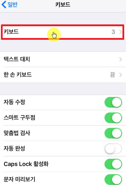 아래는 Kana 키보드 설치하는 방법을 캡처한 것이다.