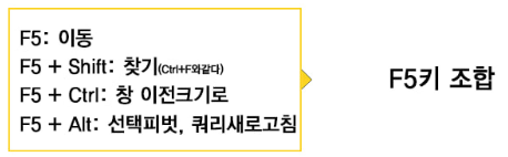 - F5 +Alt : 선택피벗, 쿼리새로고침