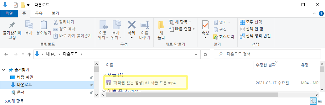 다운로드 폴더에 들어가 확인해보면 다운로드가 정상적으로 된 것을 볼 수 있다.