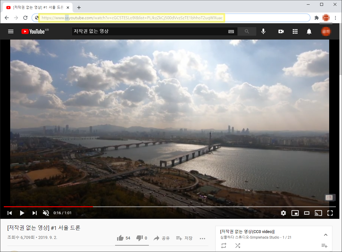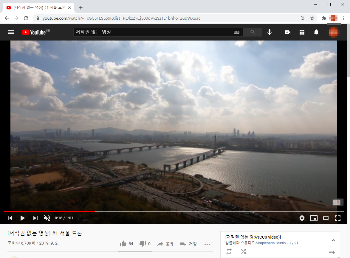 크롬을 이용해 유튜브에서 다운로드하고 싶은 동영상의 페이지 접속한다. 이번 글에서는 저작권이 없는 동영상으로 진행했다.