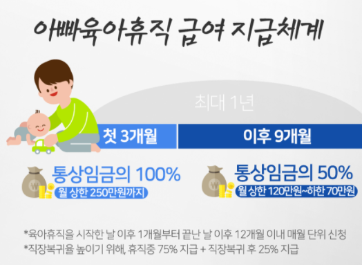 - 4개월부터 육아휴직 종료일까지 통상임금의 50%
