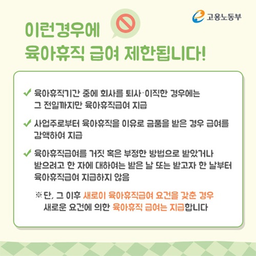 그리고 아래와 같은 경유에는 육아휴직 급여가 제한된다고 한다.