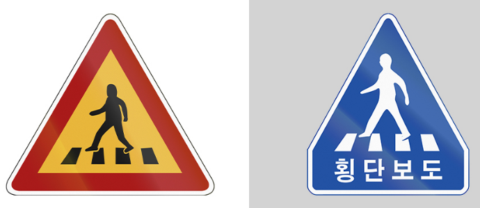 2. 횡단보도 표지판: 색상의 차이가 만드는 의미