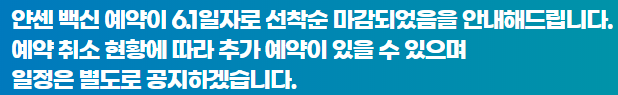 ※ 현 시간 기준(2021년 6월 1일 16시)으로 얀센 백신은 선착순 마감되었다고 한다.