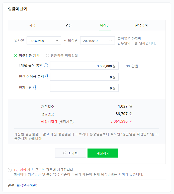 퇴직금 계산기