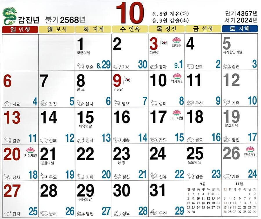 A. 불교달력은 전통적인 음력 날짜와 더불어 불교의 중요한 기념일과 행사를 표시합니다. 이는 불교 신자들에게 중요한 날을 알려주고, 일반인들에게도 유용한 정보를 제공합니다.