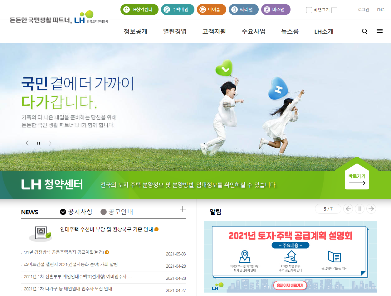 아래 링크가 LH 주택공사의 홈페이지이다.