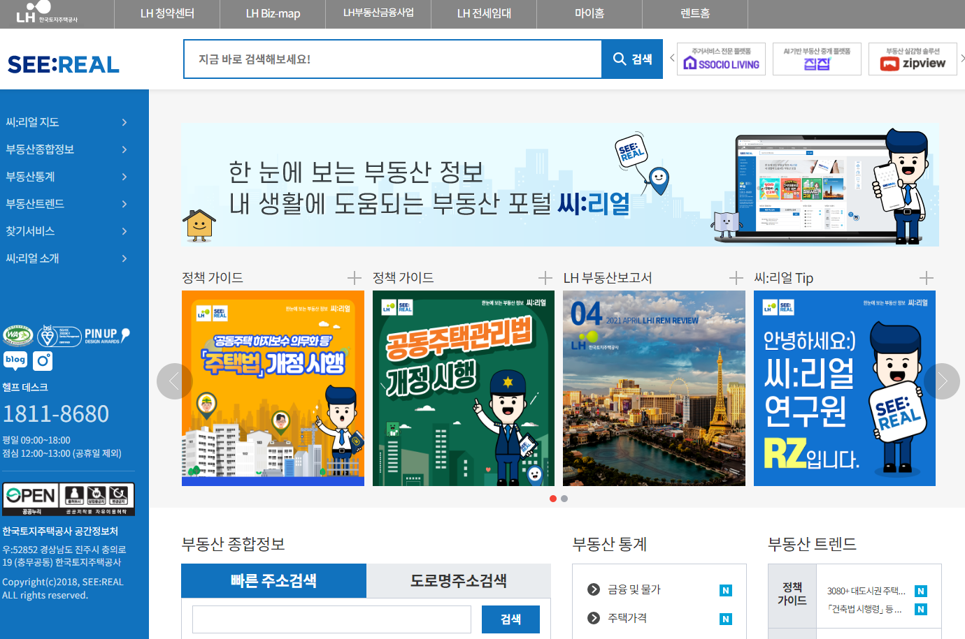 씨리얼 홈페이지는 국민 모두의 올바른 부동산 정보 활용과 삶의 질 향상을 지원하고자 만든 부동산 정보 공공 포털 서비스를 위해 만들어진 사이트이다. 씨리얼 홈페이지의 주요 서비스로는 씨리얼지도, 부동산 종합정보, 부동산 통계, 부동산 트렌드, 찾기 서비스 등이 있으며, 그중에서 가장 많이 이용하는 서비스는 부동산 종합정보이다.