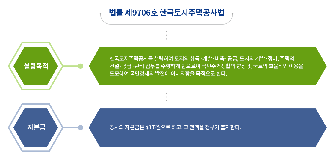LH 주택공사의 설립 근거는 한국 토지주택공사법으로 명시되어 있다.