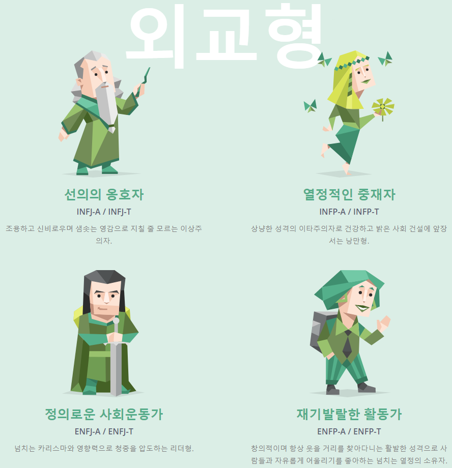 아래 링크를 클릭하면 '16Personalities'사이트에 접속해 성격유형에 대해 좀 더 자세하게 확인할 수 있다.