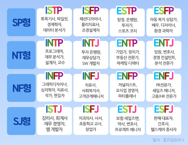 이러한 유형별로 그나마 어울리는 직업들은 무엇일까? 아래 사진에서 보면 될 것 같다. 이건 진짜 재미로 보자.