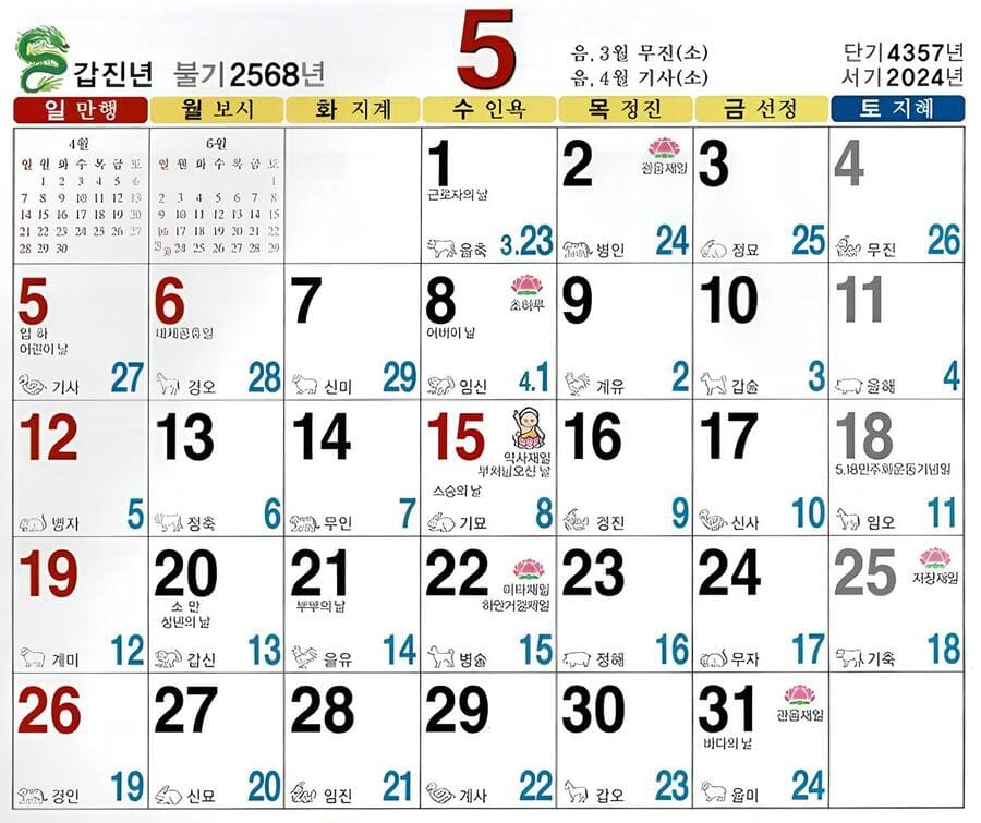 A. 불교달력은 전통적인 음력 날짜와 더불어 불교의 중요한 기념일과 행사를 표시합니다. 이는 불교 신자들에게 중요한 날을 알려주고, 일반인들에게도 유용한 정보를 제공합니다.